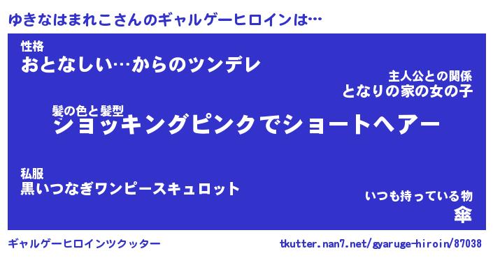 | 女子向けラノベタイトル風あだ名 | 『(仮)ゆきなはまれこのやんごとなき事情』 |