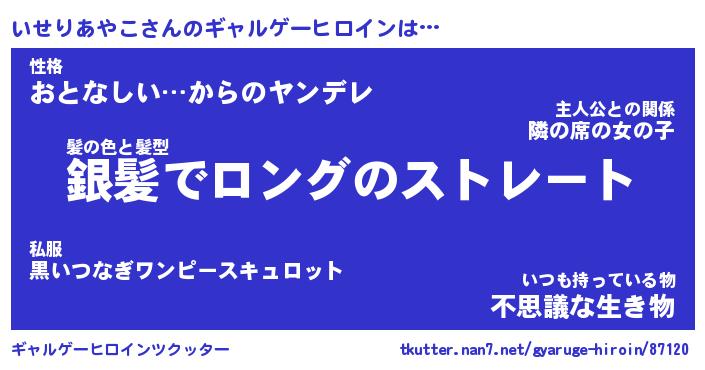 | 女子向けラノベタイトル風あだ名 | 『いせりあやこ姫と円卓の騎士』 |