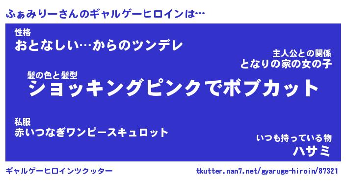 | 男性向けラノベタイトル風あだ名 | 『ふぁみりーの憂鬱』 |
