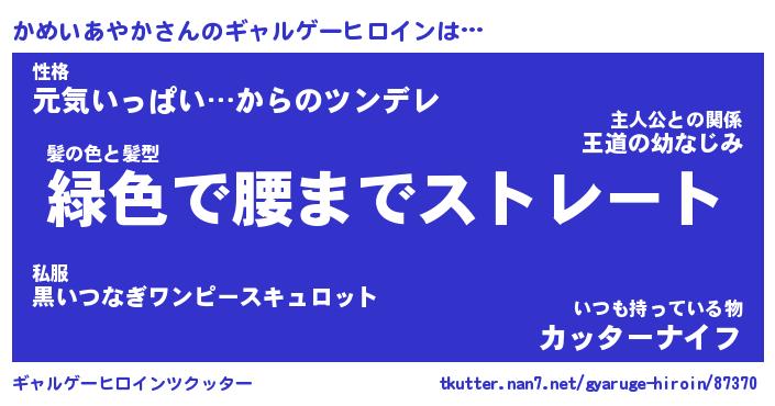 | 女子向けラノベタイトル風あだ名 | 『かめいあやか姫と円卓の騎士』 |