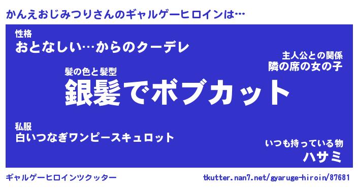 | ヒーロー風カッコイイあだ名 | 『スーパーカンエオジミツリ』 |
