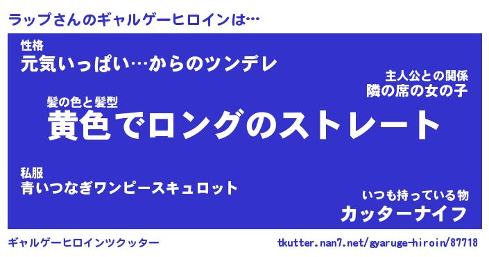 | 男性向けラノベタイトル風あだ名 | 『ラップアートオンライン』 |