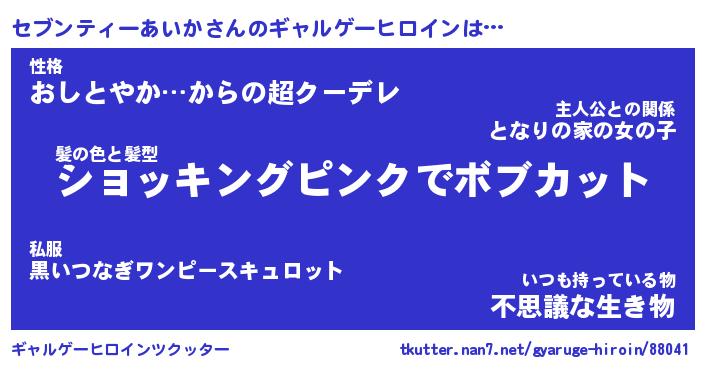 | 男性向けラノベタイトル風あだ名 | 『セブンティーあいかの憂鬱』 |