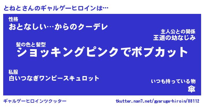 | ファンタジー風あだ名 | 『トネフェル』『エターナルトネトー』 |