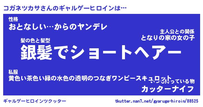 | ヒーロー風カッコイイあだ名 | 『スーパーコガネツカサ』『天弓騎士コガ』 |
