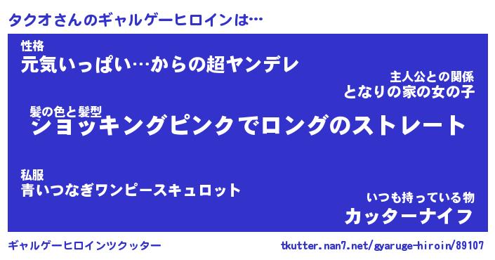 | 男性向けラノベタイトル風あだ名 | 『タクオの憂鬱』 |