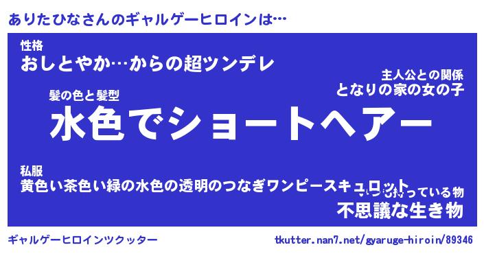 | ファンタジー風あだ名 | 『アリフェル』『エターナルアリタヒナー』 |