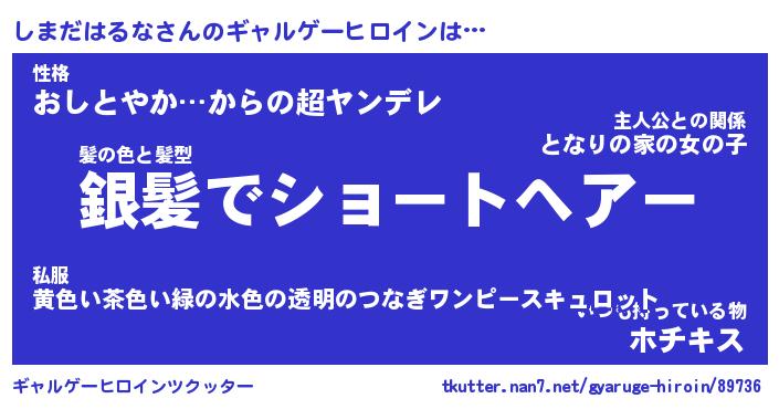 | ヒーロー風カッコイイあだ名 | 『スーパーシマダハルナ』『炎刃騎士シマ』 |