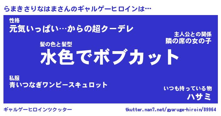 | 男性向けラノベタイトル風あだ名 | 『らまきさりなはまの憂鬱』 |