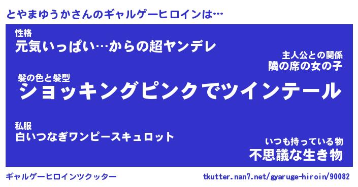| ヒーロー風カッコイイあだ名 | 『スーパートヤマユウカ』『銀牙騎士トヤ』 |