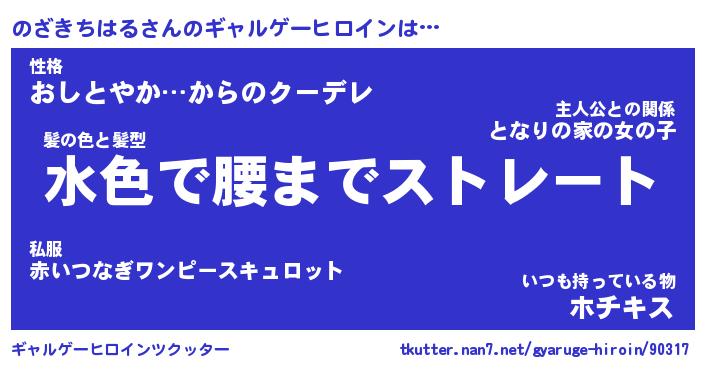 | 女子向けラノベタイトル風あだ名 | 『(仮)のざきちはるのやんごとなき事情』 |