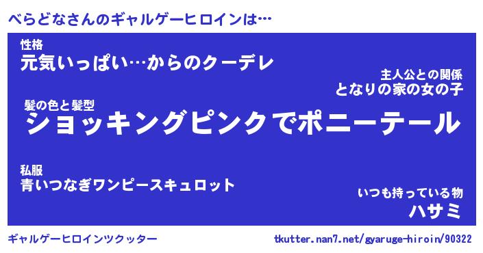 | 意味不明あだ名 | 『ペロリンべらどな』『永久保存べらどな』 |