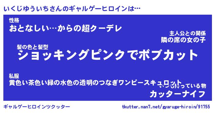 女子向けラノベタイトル風あだ名 | 『(仮)いくじゆういちのやんごとなき事情』 |