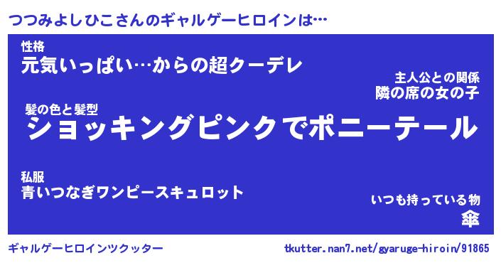 | ポケモン風あだ名 | 『ツツチュウ』『ツツミダネ』 |