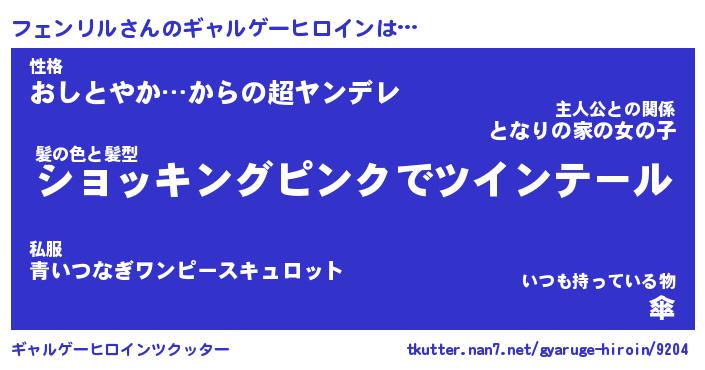 | ファンタジー風あだ名 | 『フェフェル』『エターナルフェンリルー』 |