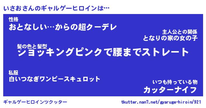 | ファンタジー風あだ名 | 『イサフェル』『エターナルイサオー』 |