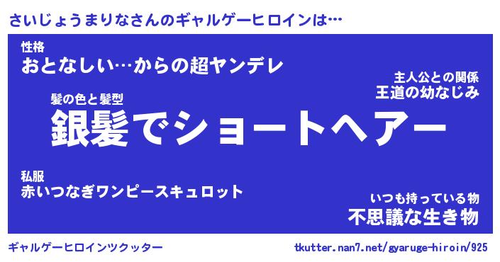 | 男性向けラノベタイトル風あだ名 | 『さいじょうまりなの憂鬱』 |