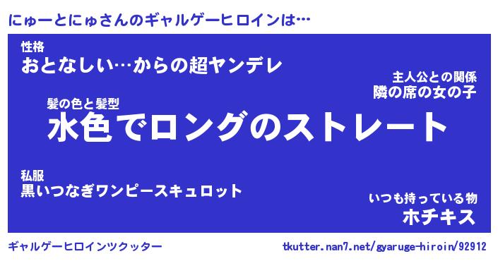 | ヘコむあだ名 | 『にゅにー』『なまこ酢』『にゅお』 |