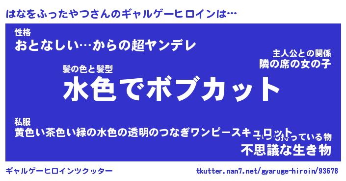 | 男性向けラノベタイトル風あだ名 | 『はなをふったやつの憂鬱』 |