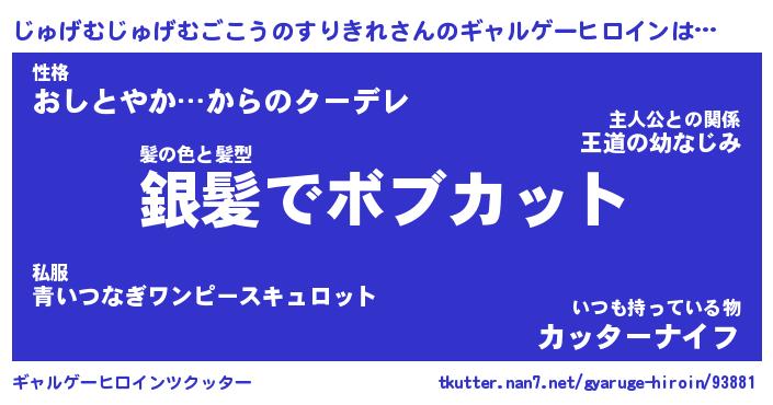 | 女子向けラノベタイトル風あだ名 | 『じゅげむじゅげむごこうのすりきれ姫と円卓の騎士』 |