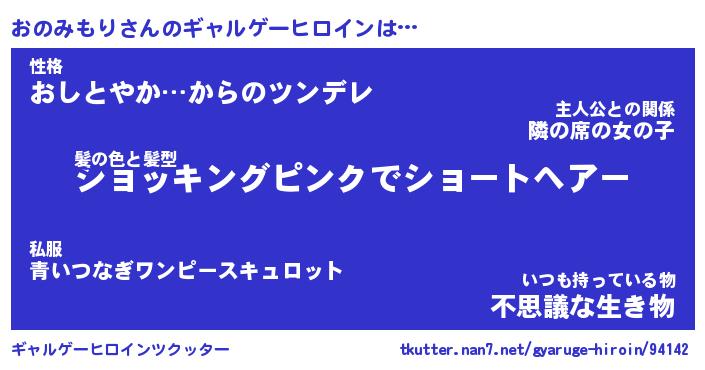 | 女子向けラノベタイトル風あだ名 | 『(仮)おのみもりのやんごとなき事情』 |