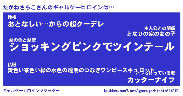 | 女子向けラノベタイトル風あだ名 | 『(仮)たかねさちこのやんごとなき事情』 |
