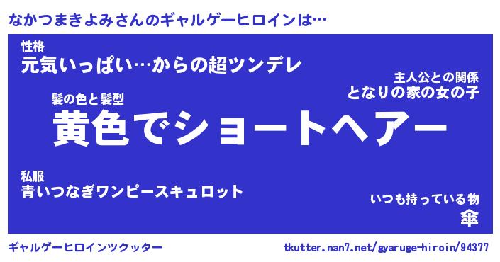 | ツイッター | なかつまきよみさんのツイッターID『namakemono_nyan』 |