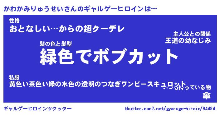 | 女子向けラノベタイトル風あだ名 | 『かわかみりゅうせい姫と円卓の騎士』 |