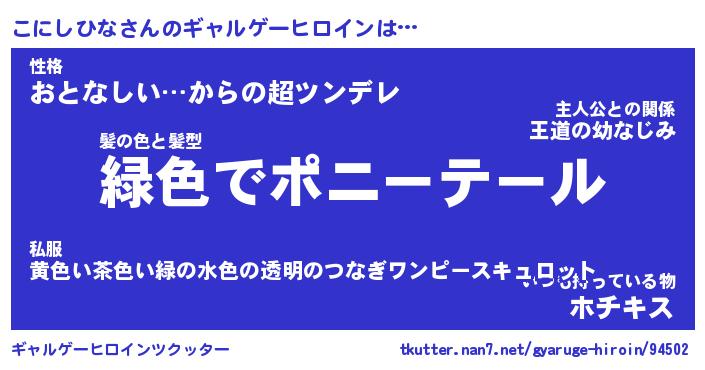 | 女子向けラノベタイトル風あだ名 | 『こにしひな姫と円卓の騎士』 |