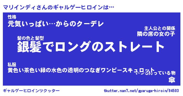 | 男性向けラノベタイトル風あだ名 | 『マリインディの憂鬱』 |