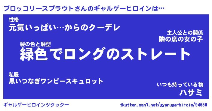 | 男性向けラノベタイトル風あだ名 | 『ブロッコリースプラウトアートオンライン』 |