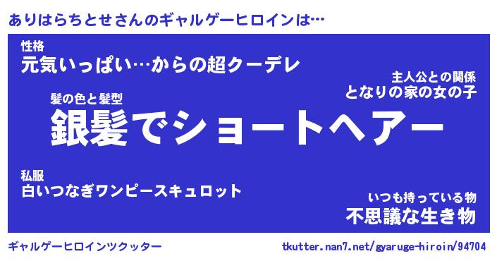 | 女子向けラノベタイトル風あだ名 | 『ありはらちとせ姫と円卓の騎士』 |