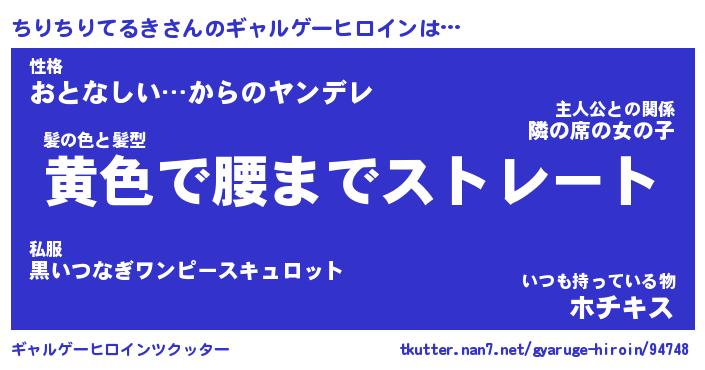 | 男性向けラノベタイトル風あだ名 | 『チリチリテルキアートオンライン』 |
