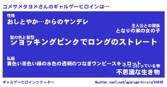 | ポケモン風あだ名 | 『ユメチュウ』『ユメサダネ』 |
