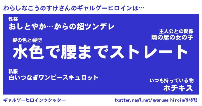 | 男性向けラノベタイトル風あだ名 | 『わらしなこうのすけの憂鬱』 |