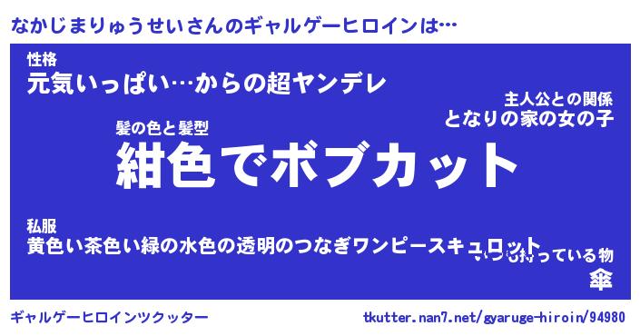 | ヒーロー風カッコイイあだ名 | 『スーパーナカジマリュウセイ』 |