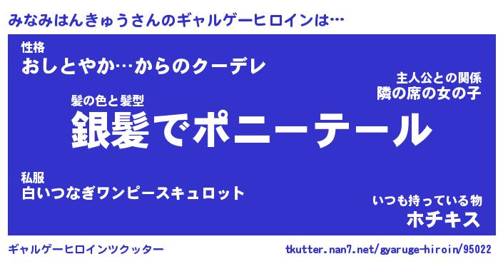 | 女子向けラノベタイトル風あだ名 | 『みなみはんきゅう姫と円卓の騎士』 |