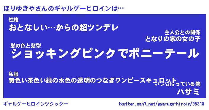 | 女子向けラノベタイトル風あだ名 | 『(仮)ほりゆきやのやんごとなき事情』 |