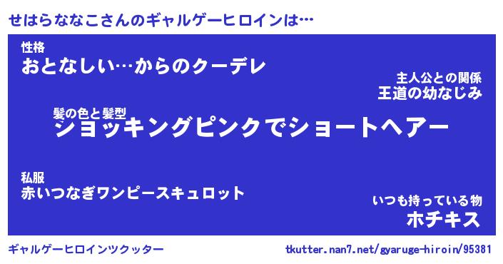 | 男性向けラノベタイトル風あだ名 | 『せはらななこの憂鬱』 |