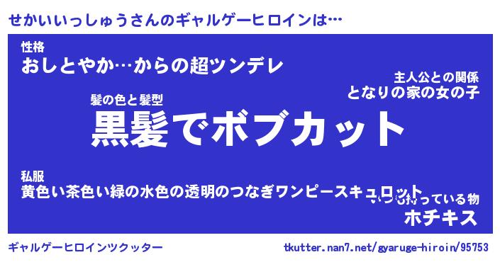 | 男性向けラノベタイトル風あだ名 | 『せかいいっしゅうの憂鬱』 |