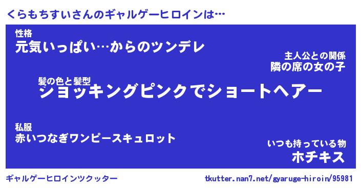 | 女子向けラノベタイトル風あだ名 | 『(仮)くらもちすいのやんごとなき事情』 |