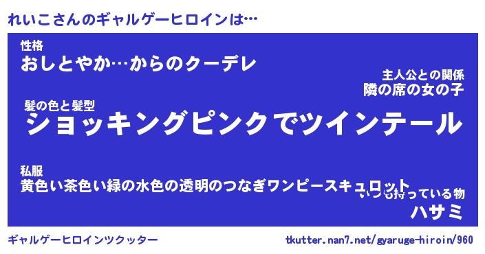 | 男性向けラノベタイトル風あだ名 | 『れいこの憂鬱』 |