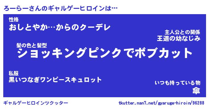 | 女子向けラノベタイトル風あだ名 | 『(仮)ろーらーのやんごとなき事情』 |