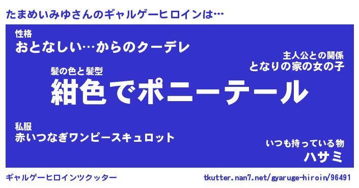| ヒーロー風カッコイイあだ名 | 『スーパータマメイミユ』『暗黒騎士タマ』 |
