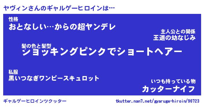 | 女子向けラノベタイトル風あだ名 | 『(仮)ヤヴィンのやんごとなき事情』 |