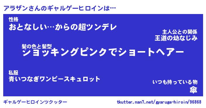 | 男性向けラノベタイトル風あだ名 | 『アラザンの憂鬱』 |