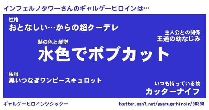 | 女子向けラノベタイトル風あだ名 | 『(仮)インフェルノタワーのやんごとなき事情』 |