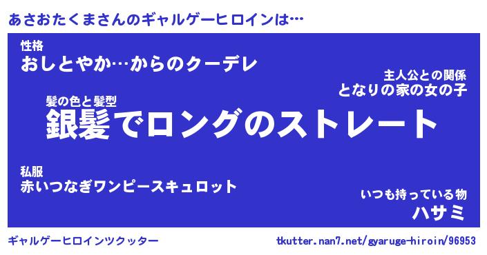 | ヒーロー風カッコイイあだ名 | 『スーパーアサオタクマ』『銀牙騎士アサ』 |