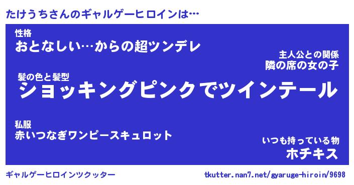 | 女子向けラノベタイトル風あだ名 | 『(仮)たけうちのやんごとなき事情』 |