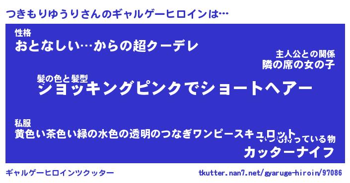 | 女子向けラノベタイトル風あだ名 | 『(仮)つきもりゆうりのやんごとなき事情』 |